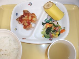 2020年5月12日 / 最終更新日 : 2020年5月18日 asunaro-user 今日の給食 2020/05/12の給食 <春野菜のチキンカレー> 鶏肉・たまねぎ・にんじん・じゃがいも・アスパラガス・マッシュルーム・グリンピースの入ったカレーです。豆乳とケチャップ・ソースを加えてまろやかさと濃くを出しました。 <コールスローサラダ> 茹でた […]