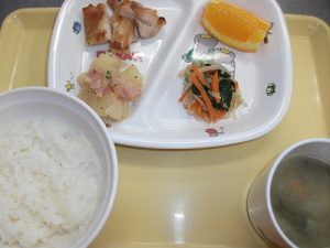 2020年4月2日 / 最終更新日 : 2020年4月3日 asunaro-user 今日の給食 2020/04/02の給食 <鮭のちゃんちゃん焼き> 鮭の塩と酒をふり生臭みをとり、酒・みりん・味噌を合わせたタレを付けて焼き、キャベツ・たまねぎ・にんじん・もやし・えのきを油で炒め、みりん・砂糖・味噌味を加え魚にのせました。 <さつまいもの甘煮> […]