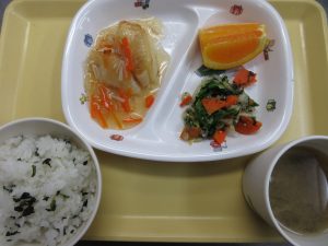 2023年12月5日 / 最終更新日 : 2023年12月5日 asunaro-user 今日の給食 2023/12/05の給食 <わかめごはん> <カレイの野菜あんかけ> カレイに酒・しょうが・塩で下味を付け片栗粉をまぶして焼き、スライスしたにんじん・たまねぎ・えのきを炒め、しょうゆ・和風だし・砂糖・片栗粉で和風あんを作り魚にかけまし […]