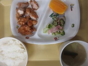 鶏肉を酒・しょうが・にんにく・しょう油・鶏がらだしに漬け込み片栗粉をまぶして油で揚げました。