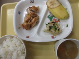 鶏肉を酒・しょうが・にんにく・しょう油・砂糖・みりんで下味を付けこんがり焼き上げました。