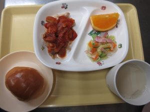 <チキンのトマトソースかけ>