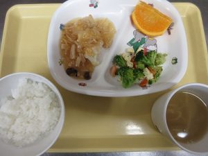 カレイを酒・しょうが・塩で下味を付け片栗粉をまぶして焼き、たまねぎ・えのき・しめじを炒めてしょう油・和風だし・砂糖・みりんで味を付け片栗粉でとろみをつけたあんをかけました。