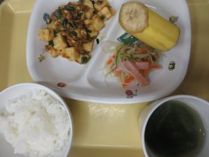 豚ひき肉を酒・しょうが・にんにくで下味をつけ、たまねぎ・にんじん・にらを加えて炒め、赤みそ・醤油・砂糖・中華だしで味を調え、片栗粉でとろみをつけました。
