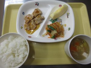 鶏肉に酒・しょうが・にんにく・しょうゆ・砂糖・みりんで下味をつけこんがりと焼き上げました。