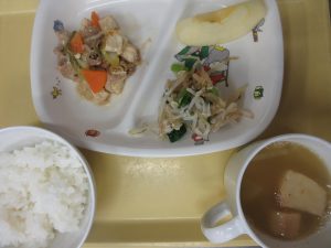 だいこん・ジャガイモ・麩の入ったみそ汁です。