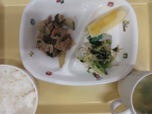 蒸したきゃべつ・きゅうり・もやしを砂糖・酢・しょう油・ごま油・にんにく・鶏がらだしと韓国のりで和えました。