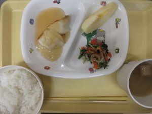 カレイに片栗粉をまぶして焼き、おろした大根・しょうゆ・和風だし・みりんをあわせたおろしあんをのせました。