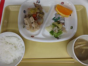 蒸したれんこん・きゃべつ・きゅうりを和風ドレッシングで和えました。
