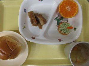 きゃべつ・にんじん・たまねぎ・ABCマカロニの入ったコンソメスープです。